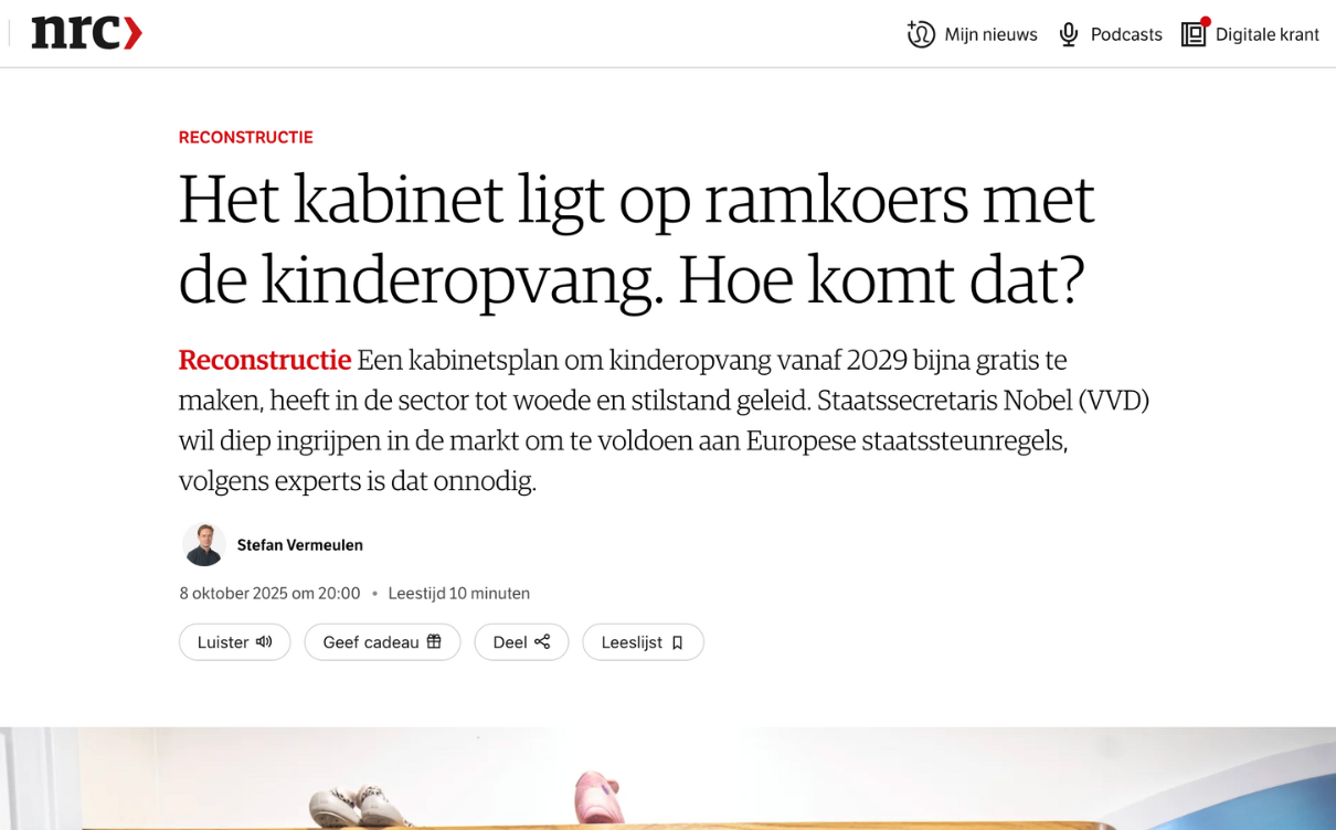 De hervorming van de kinderopvang wordt vaak gepresenteerd als een technische verandering van het financieringssysteem. In werkelijkheid is het een politieke keuze.