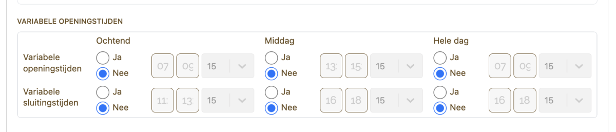 Variabele openingstijden