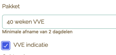 - Klik op de checkbox “VVE Indicatie” in je standaard pakket