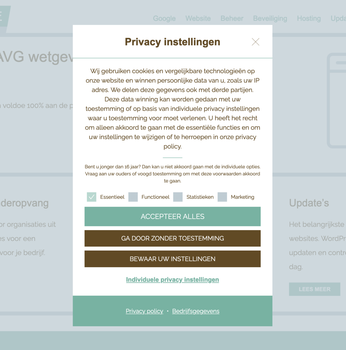Indien je deze functionaliteit niet aanbiedt ben je in overtreding en riskeer je een hoge boete tot aan 4% van de jaaromzet. Een algemene ‘cookiewall’ waar bezoekers alleen maar mee akkoord kunnen gaan is verboden.