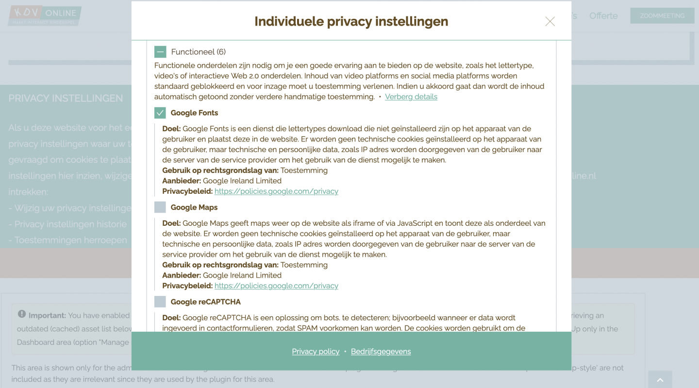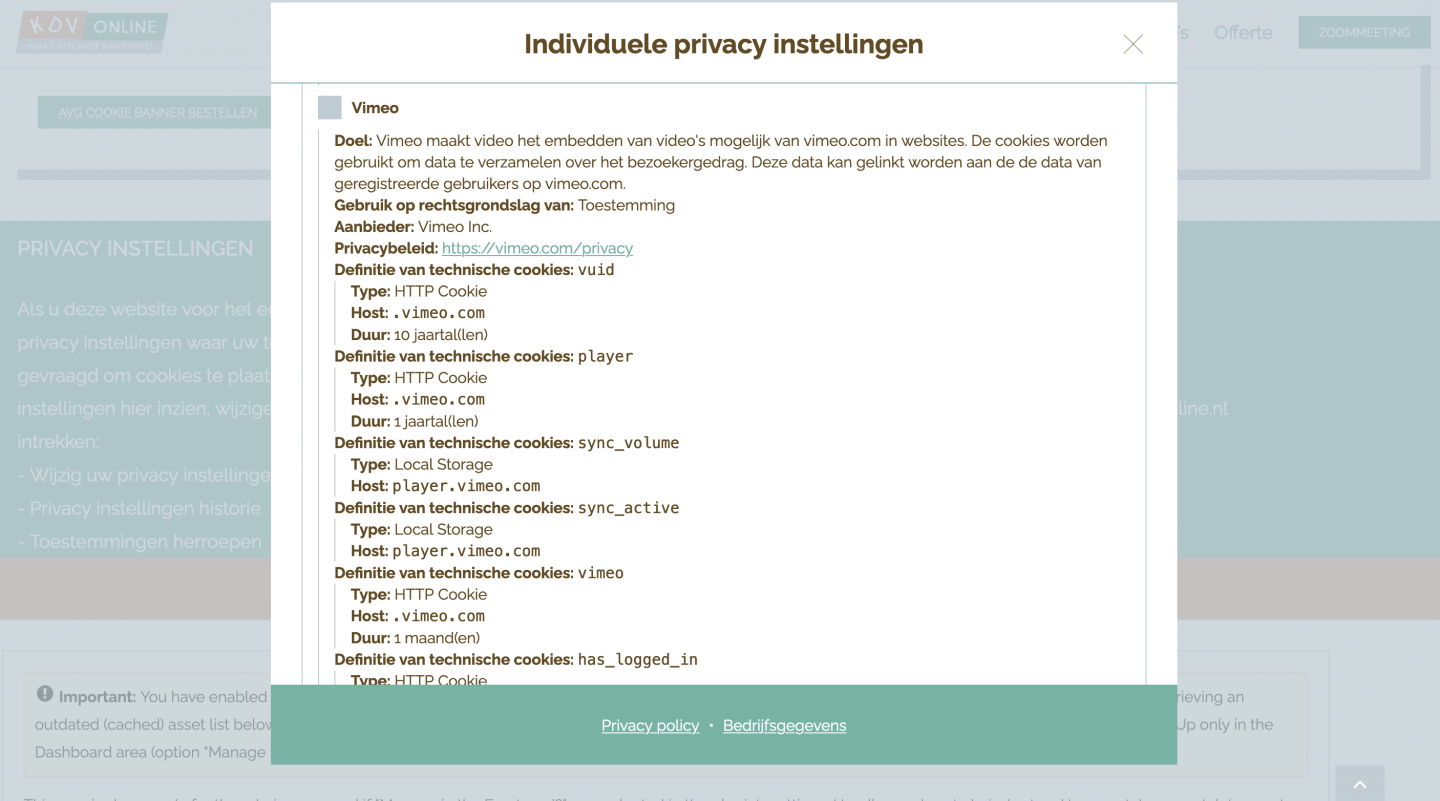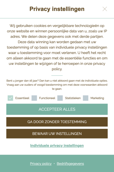 Als websitehouder ben je volgens de wet verplicht om vooraf toestemming te vragen aan jouw websitebezoeker voor de cookies die je op zijn apparaat plaatst. De websitebezoeker moet individueel toestemming kunnen geven, inzicht hebben in de verleende en geweigerde toestemmingen en zijn toestemmingen ook kunnen herzien.