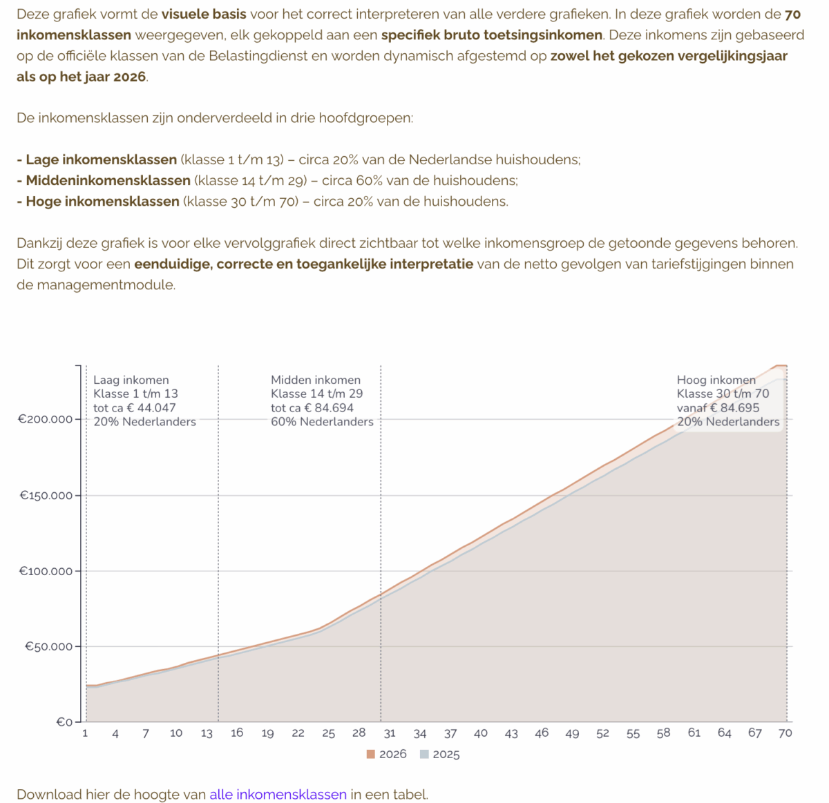 Duidelijk overzicht van de netto kosten van alle inkomensklassen